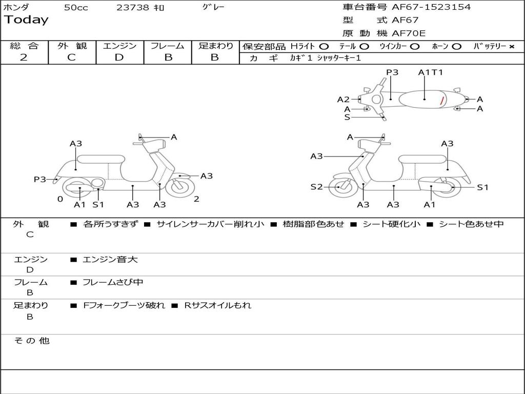 | Номер рамы / VIN | AF67-1523154 |