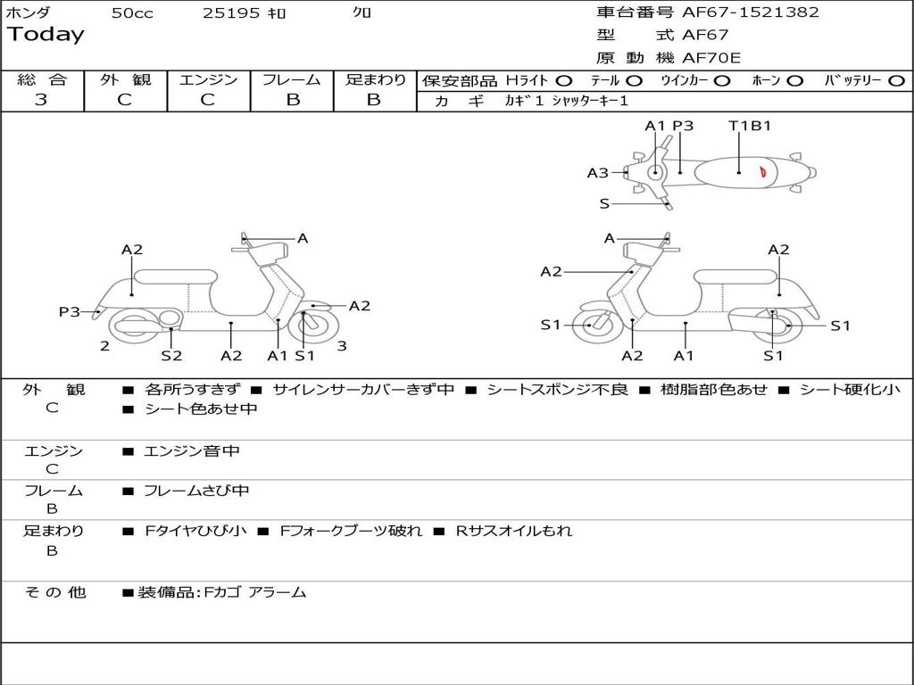 | Номер рамы / VIN | AF67-1521382 |