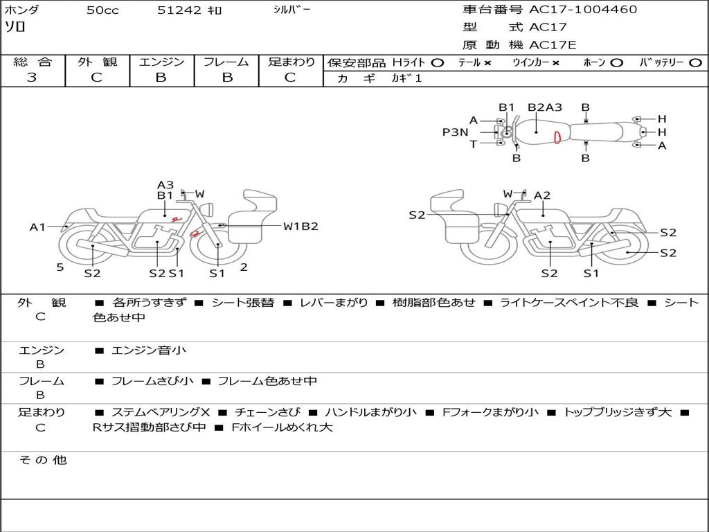 | Номер рамы / VIN | AC17-1004460 |