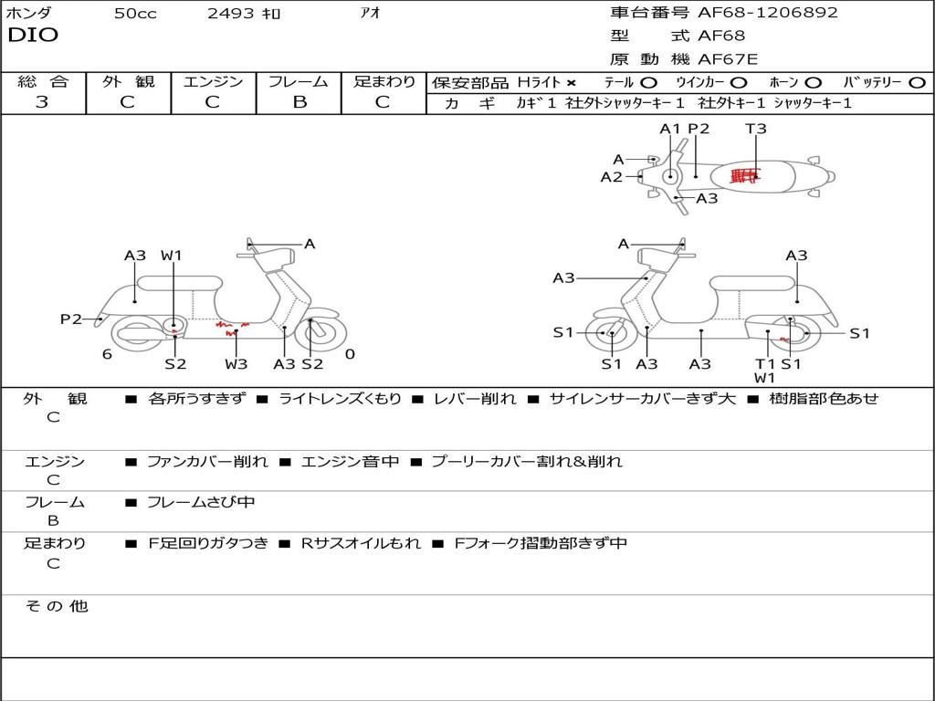 | Номер рамы / VIN | AF68-1206892 |