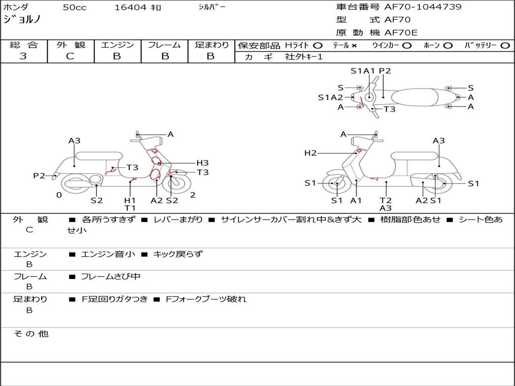 | Номер рамы / VIN | AF70-1044739 |