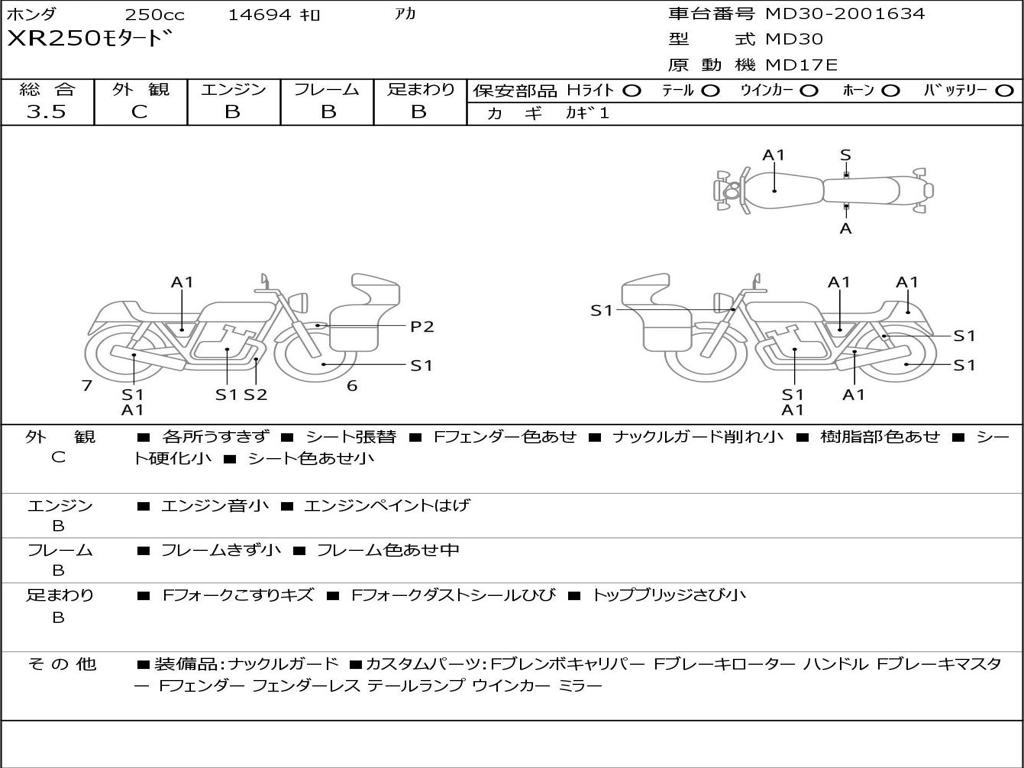 | Номер рамы / VIN | MD30-2001634 |