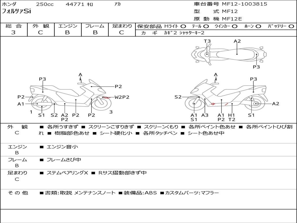 | Номер рамы / VIN | MF12-1003815 |
