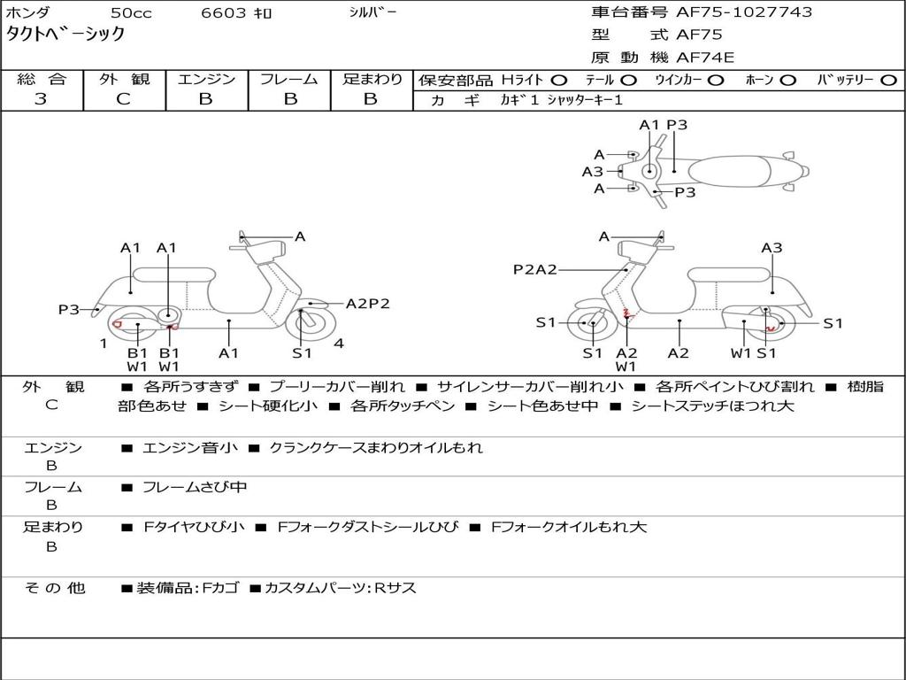 | Номер рамы / VIN | AF75-1027743 |