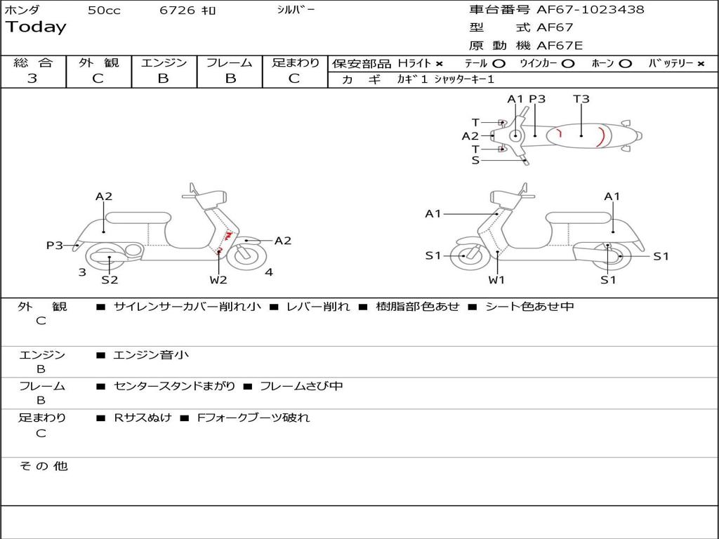 | Номер рамы / VIN | AF67-1023438 |