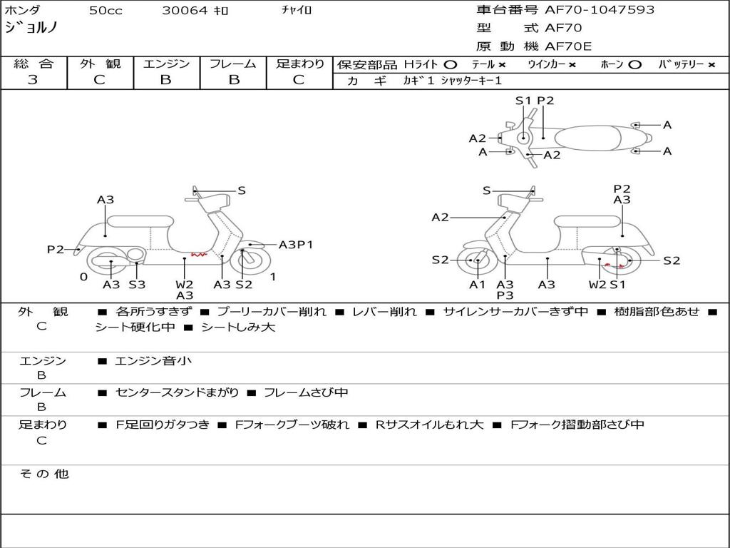 | Номер рамы / VIN | AF70-1047593 |