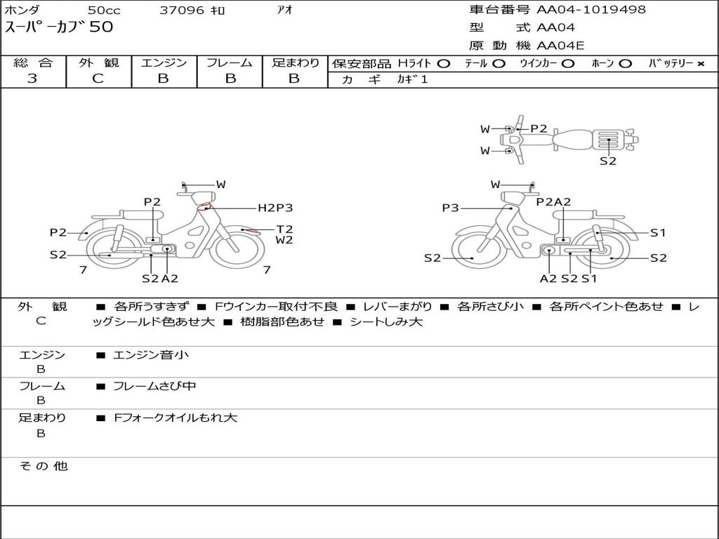 | Номер рамы / VIN | AA04-1019498 |