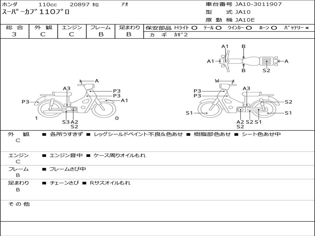 | Номер рамы / VIN | JA10-3011907 |