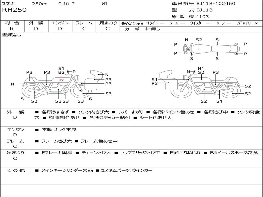 | Номер рамы / VIN | SJ11B-102460 |
