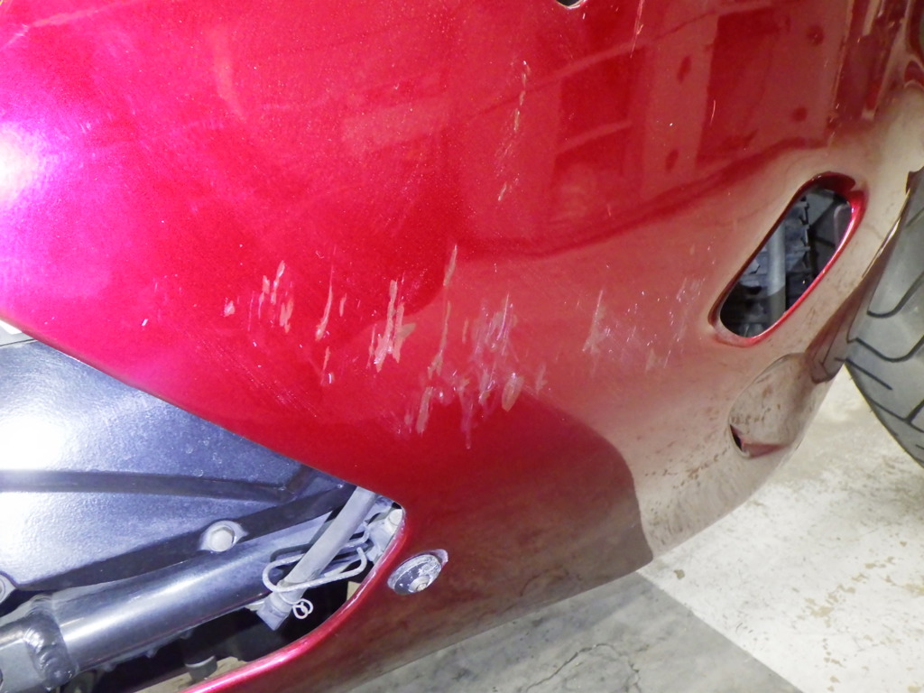 | снизу | царапины <много>, частичная подкраска, трещины, отремонтировано |