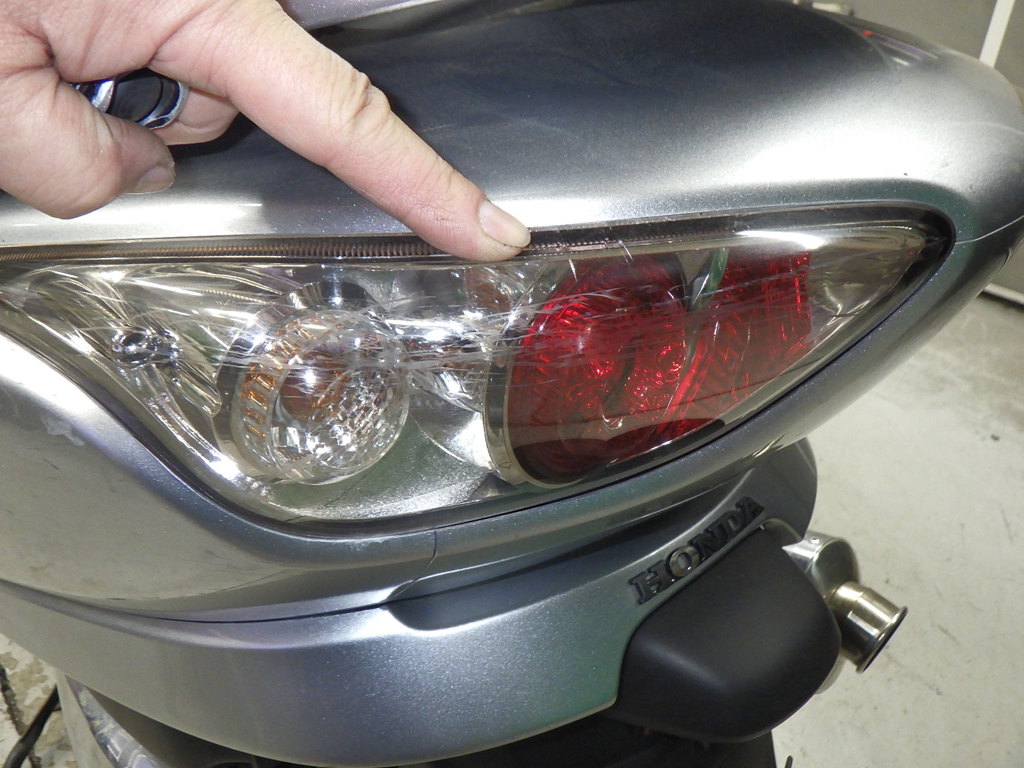 | задний фонарь | царапины <много>, трещины |