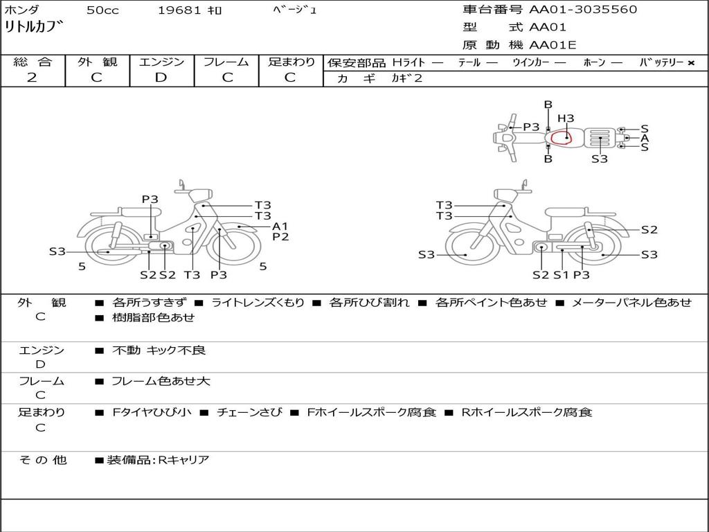 | Номер рамы / VIN | AA01-3035560 |