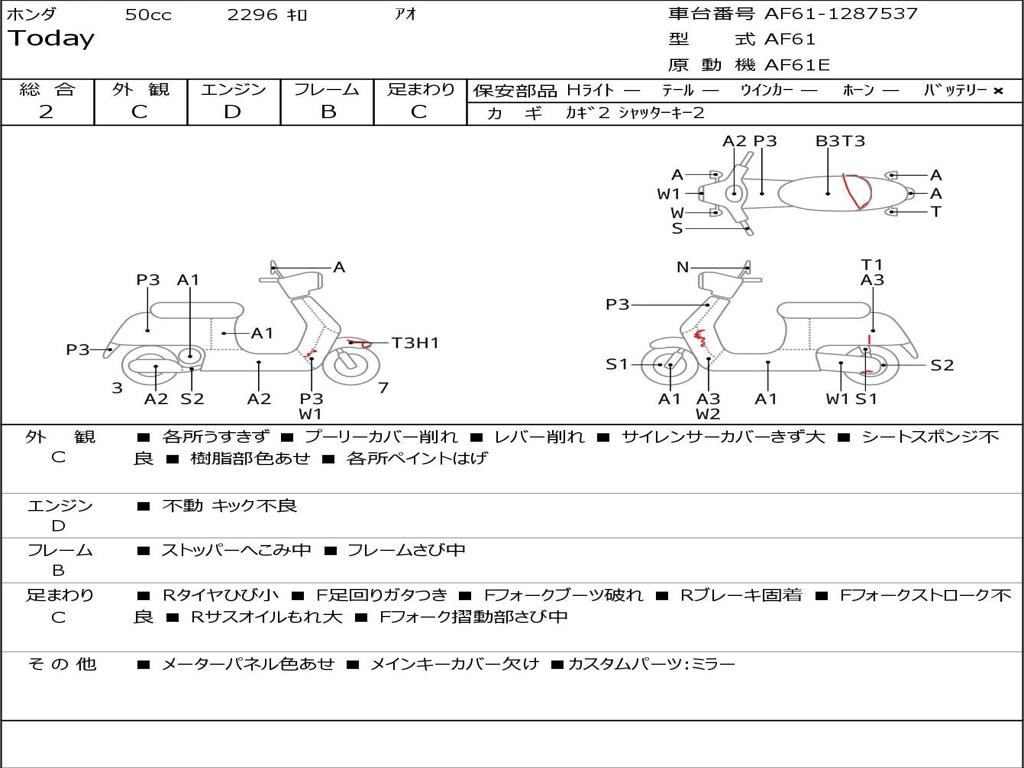 | Номер рамы / VIN | AF61-1287537 |