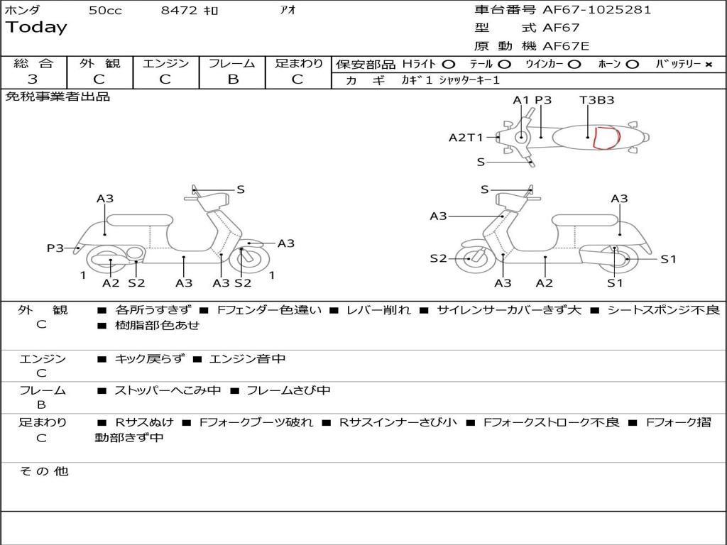 | Номер рамы / VIN | AF67-1025281 |