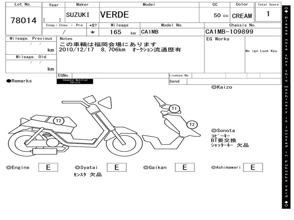 | Номер рамы / VIN | CA1MB-109899 |