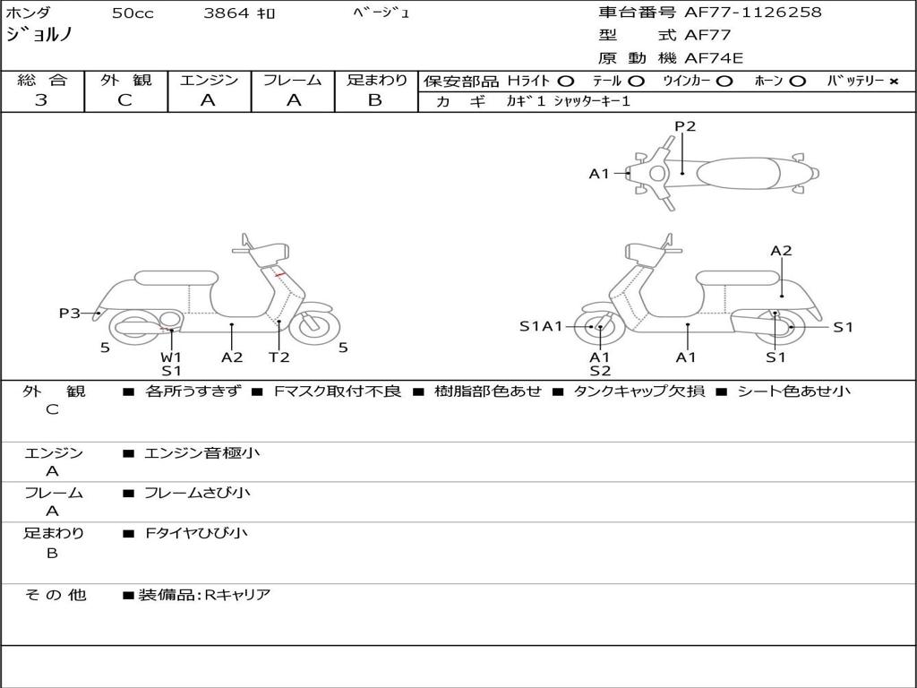 | Номер рамы / VIN | AF77-1126258 |