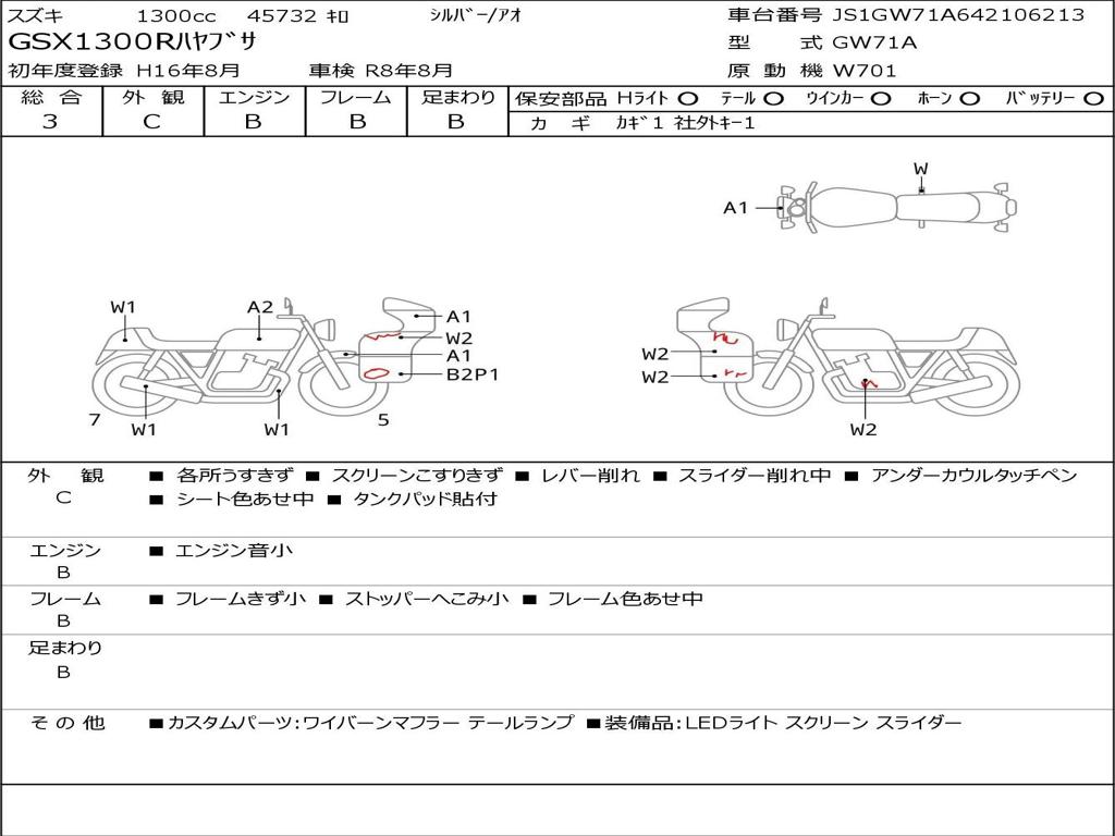 | Номер рамы / VIN | JS1GW71A642106213 |