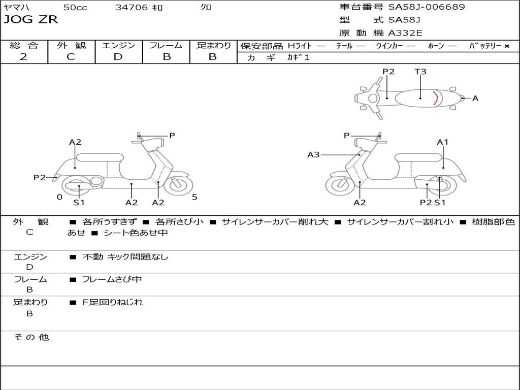 | Номер рамы / VIN | SA58J-006689 |