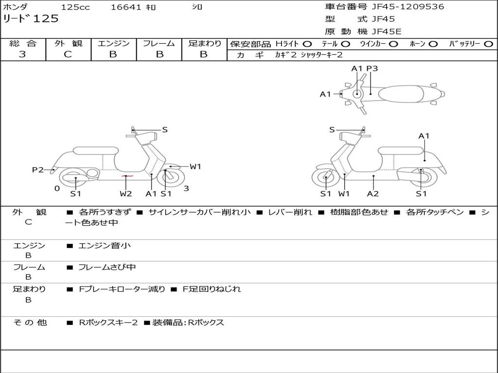 | Номер рамы / VIN | JF45-1209536 |