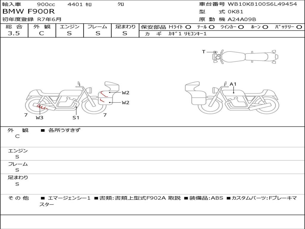 | Номер рамы / VIN | WB10K8100S6L49454 |
