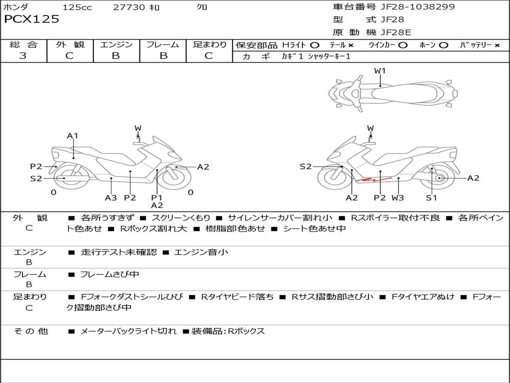 | Номер рамы / VIN | JF28-1038299 |