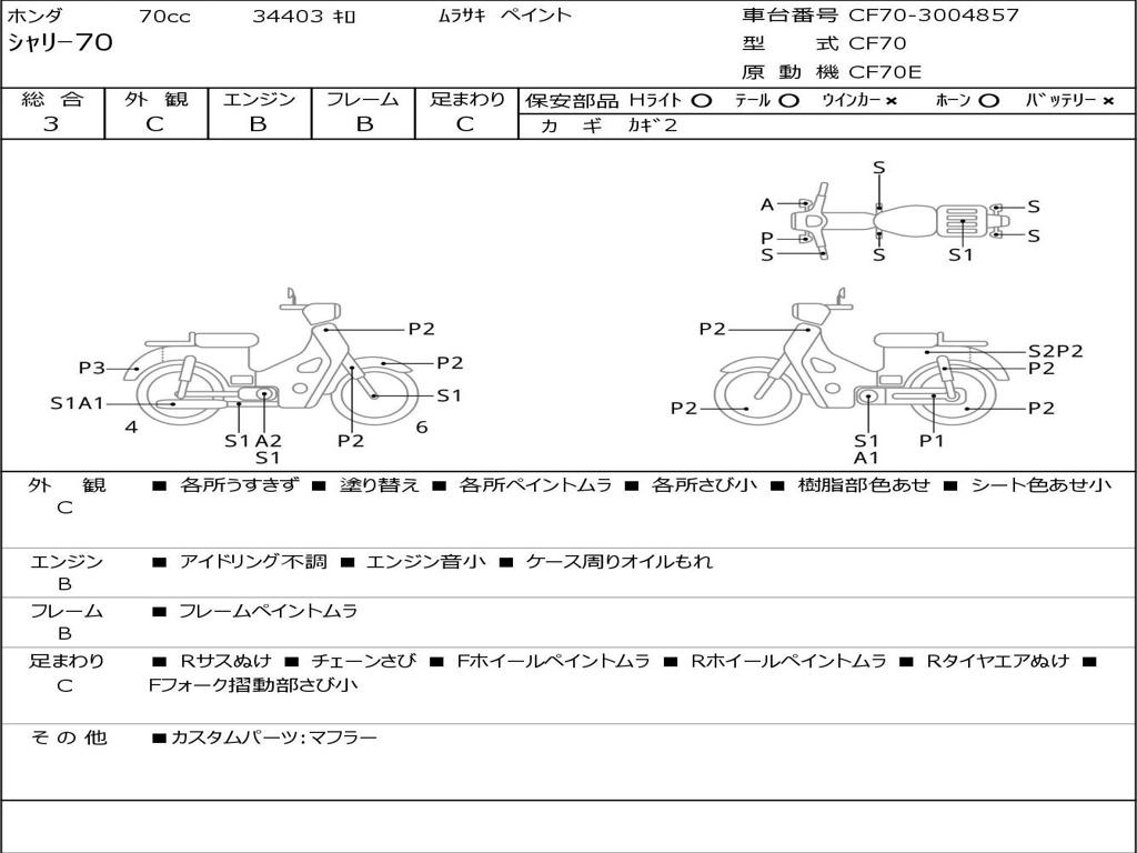 | Номер рамы / VIN | CF70-3004857 |