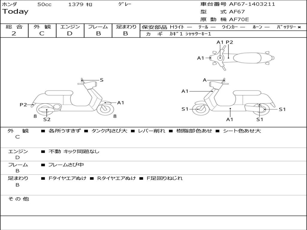 | Номер рамы / VIN | AF67-1403211 |