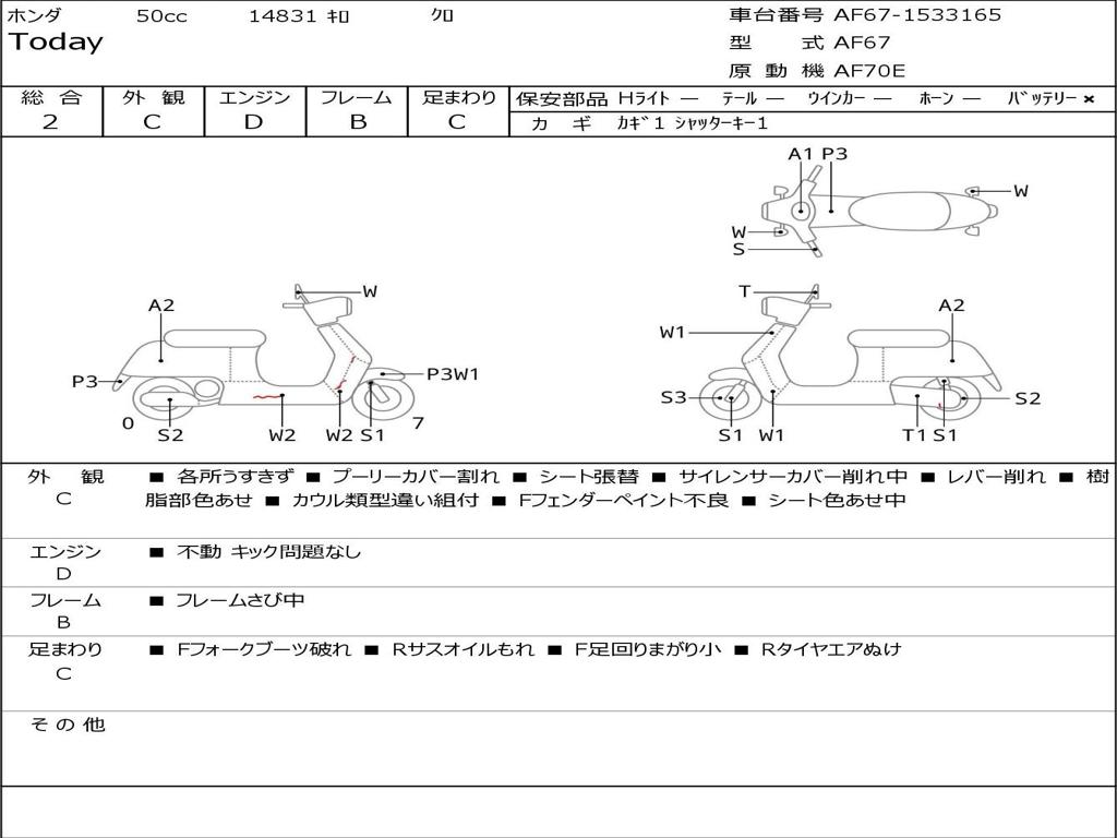 | Номер рамы / VIN | AF67-1533165 |