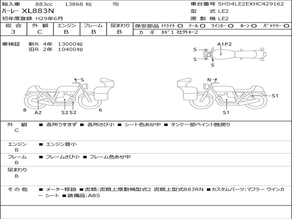 | Номер рамы / VIN | 5HD4LE2EXHC429162 |