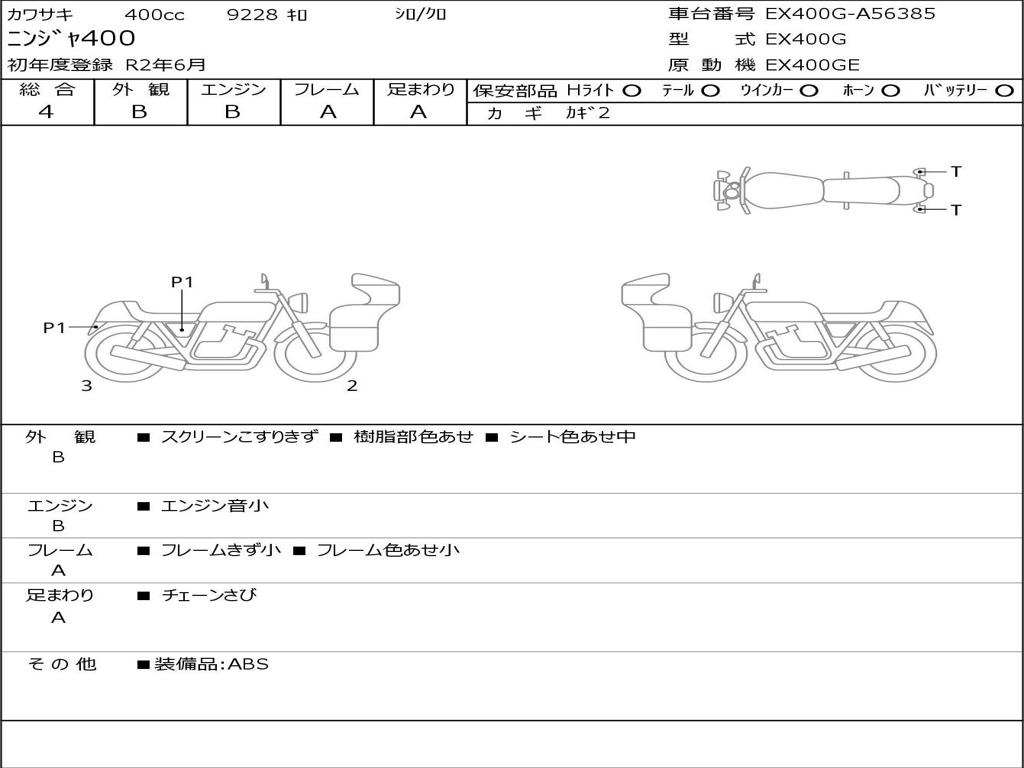 | Номер рамы / VIN | EX400G-A56385 |
