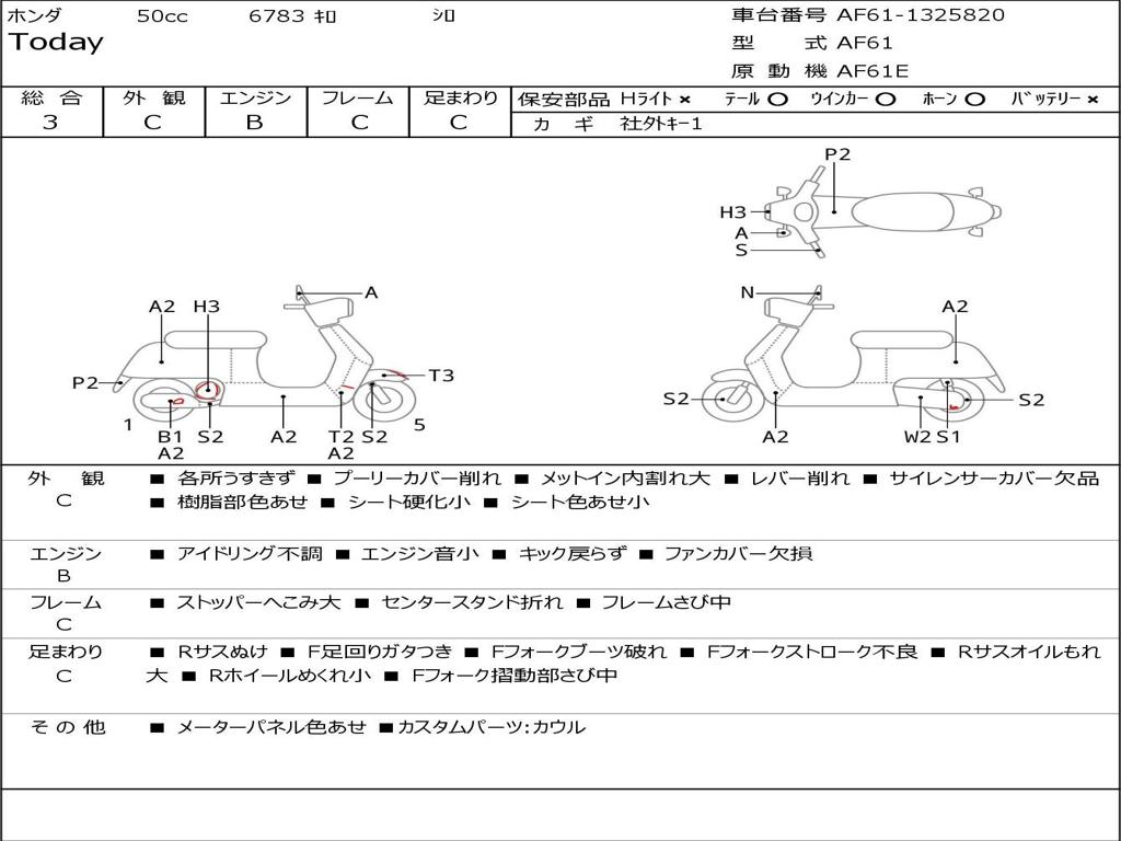 | Номер рамы / VIN | AF61-1325820 |