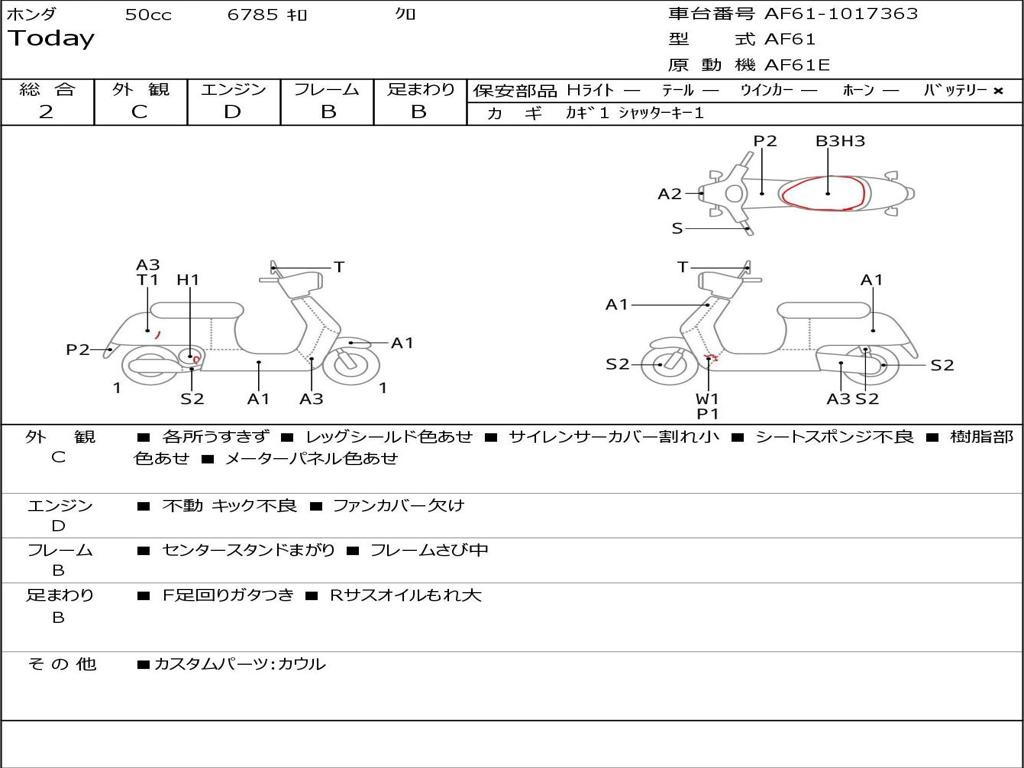 | Номер рамы / VIN | AF61-1017363 |