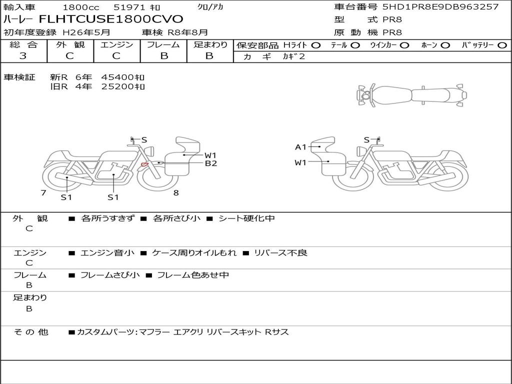| Номер рамы / VIN | 5HD1PR8E9DB963257 |
