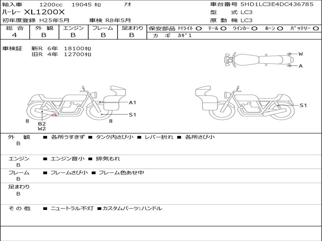 | Номер рамы / VIN | 5HD1LC3E4DC436785 |