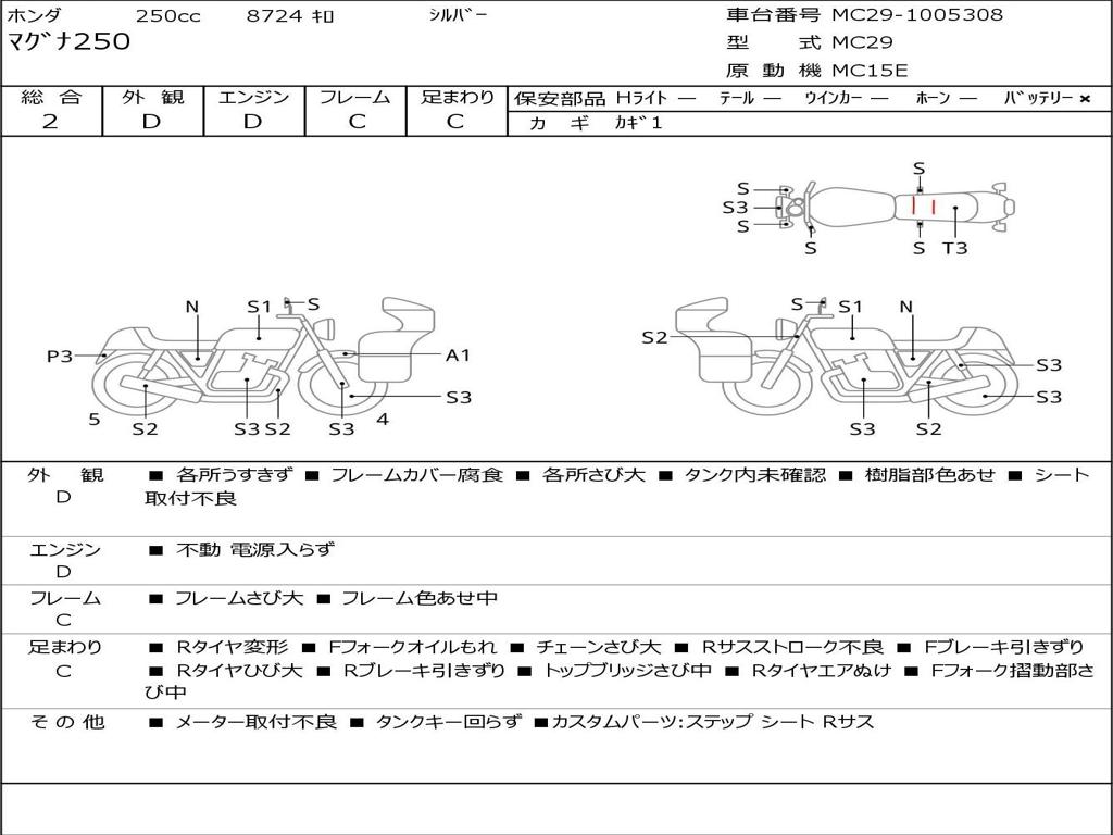 | Номер рамы / VIN | MC29-1005308 |