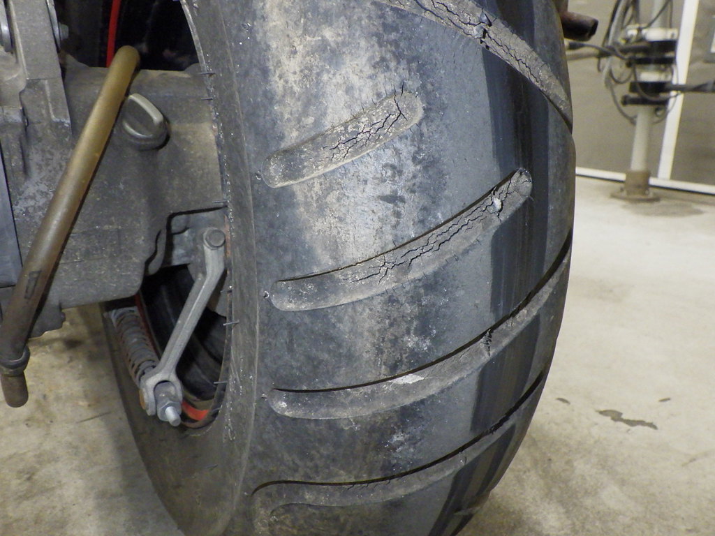| шина | трещины, требует замены |