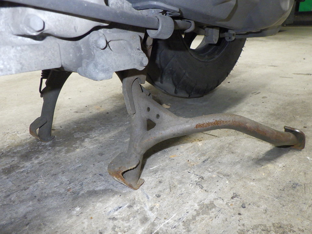 | внешняя часть вилки | царапины <много>, следы коррозии <много>, потертость, потек масла |