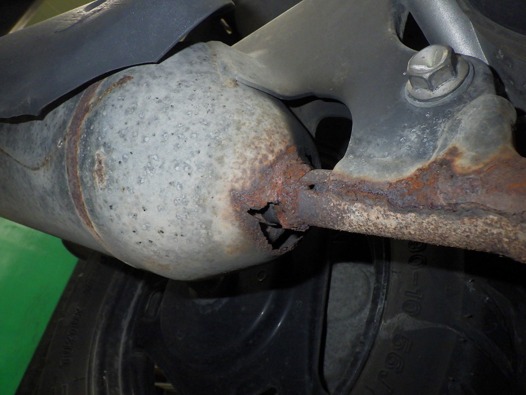 | глушитель | следы коррозии <много>, трещины, отсутствует, потеки на выпускном коллекторе |