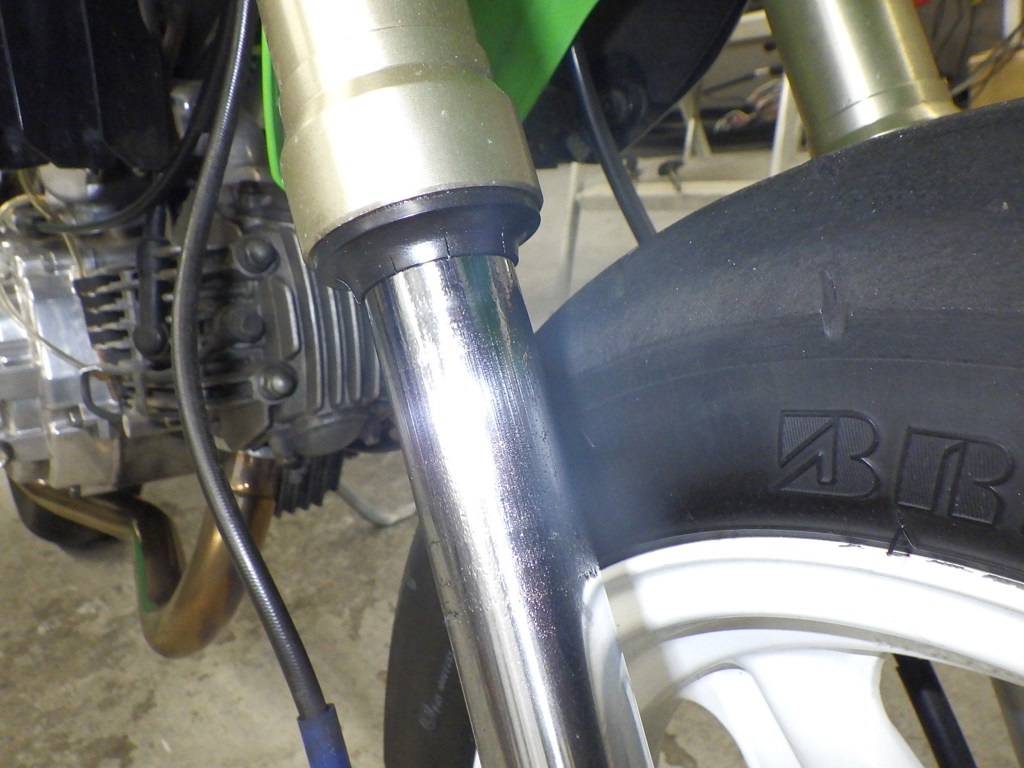 | внешняя часть вилки | потек масла <много> |