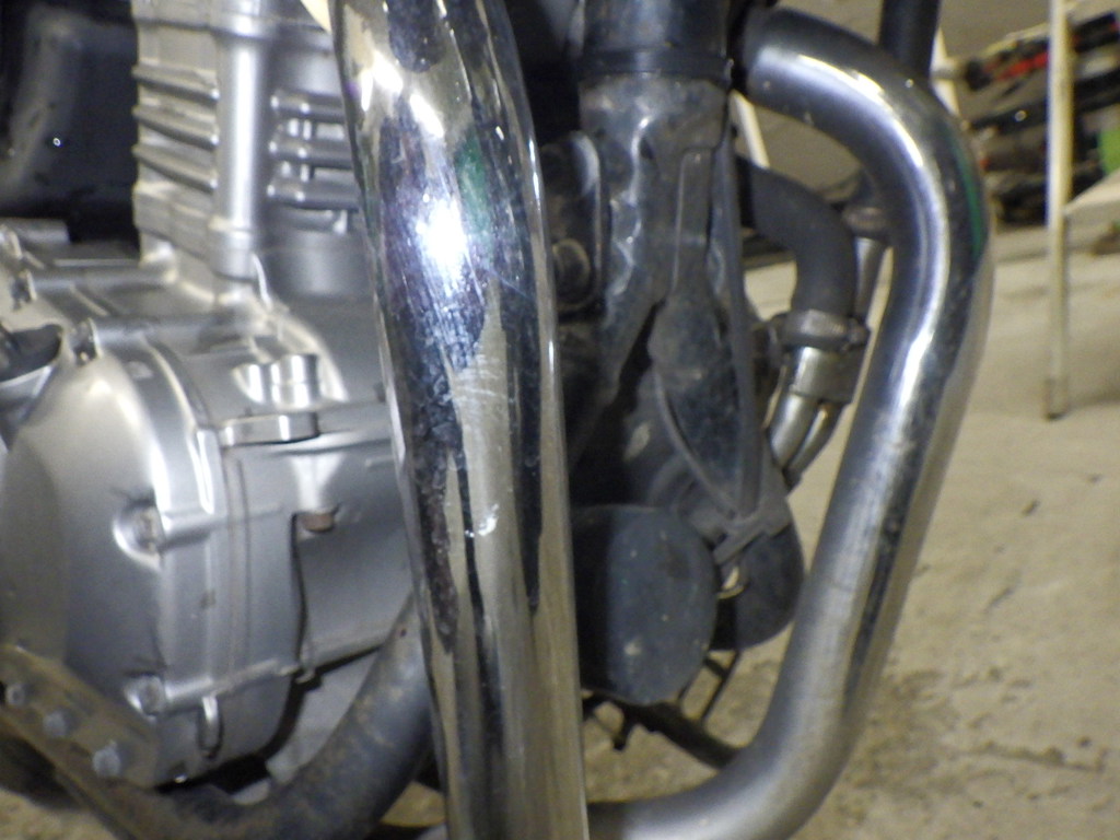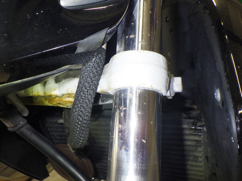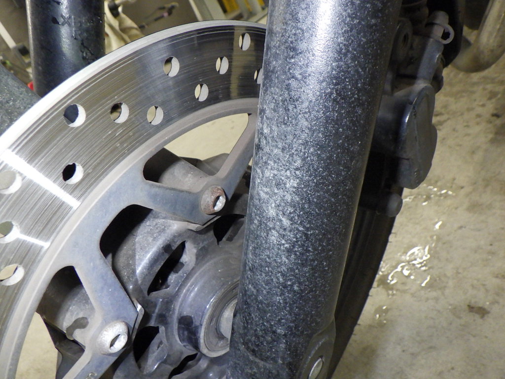 | внешняя часть вилки | царапины, следы коррозии <много>, потек масла |