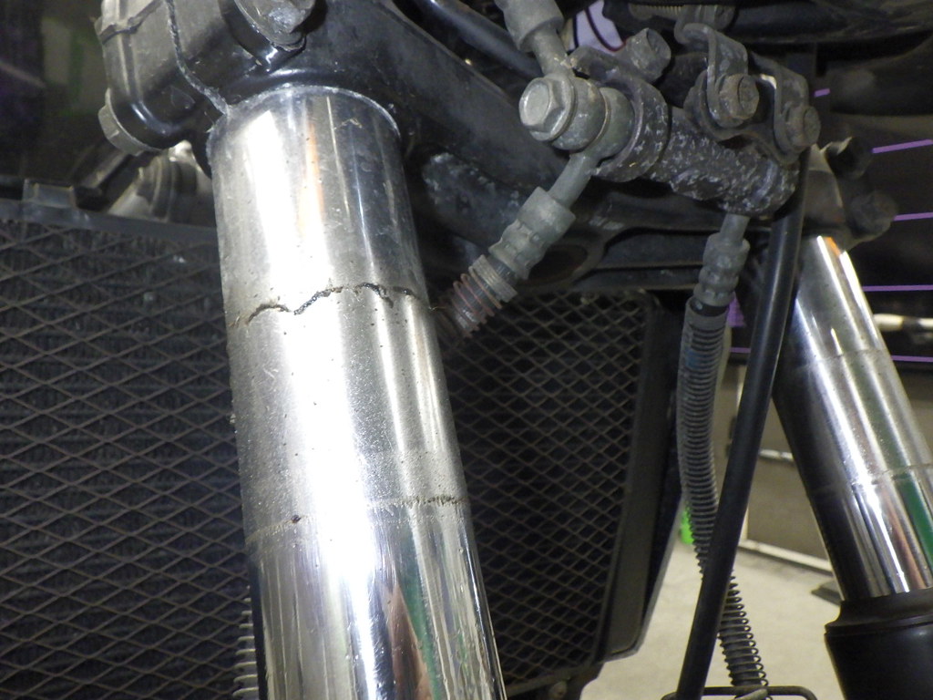| внешняя часть вилки | царапины, потек масла <много> |