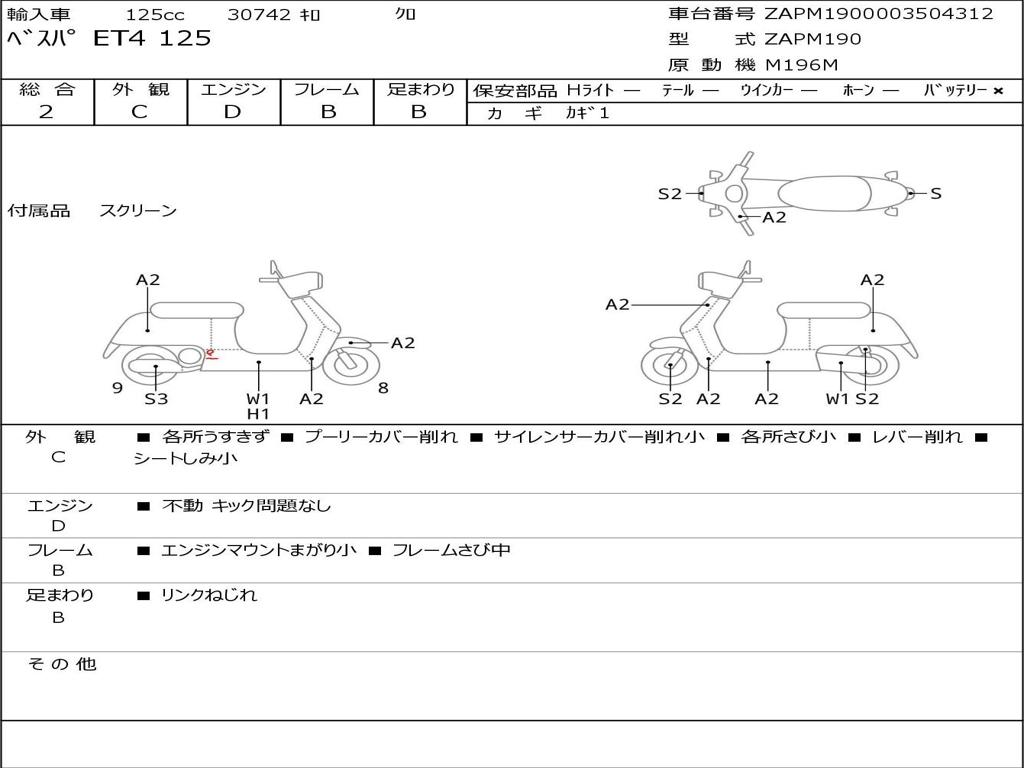 | Номер рамы / VIN | ZAPM1900003504312 |