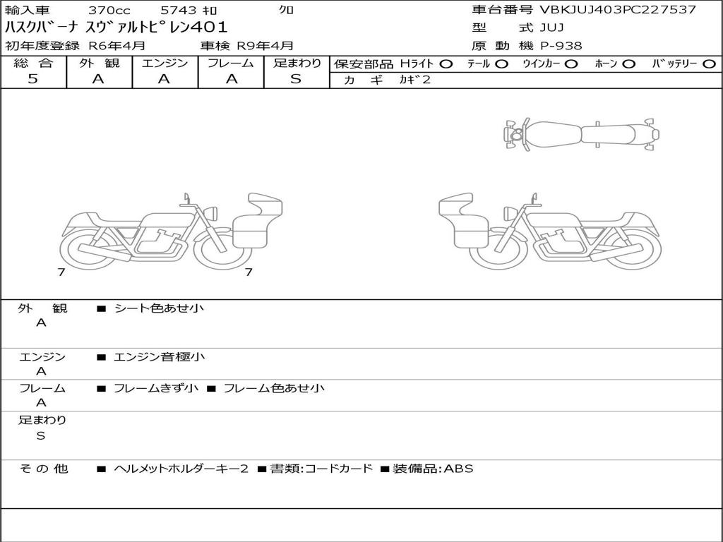 | Номер рамы / VIN | VBKJUJ403PC227537 |