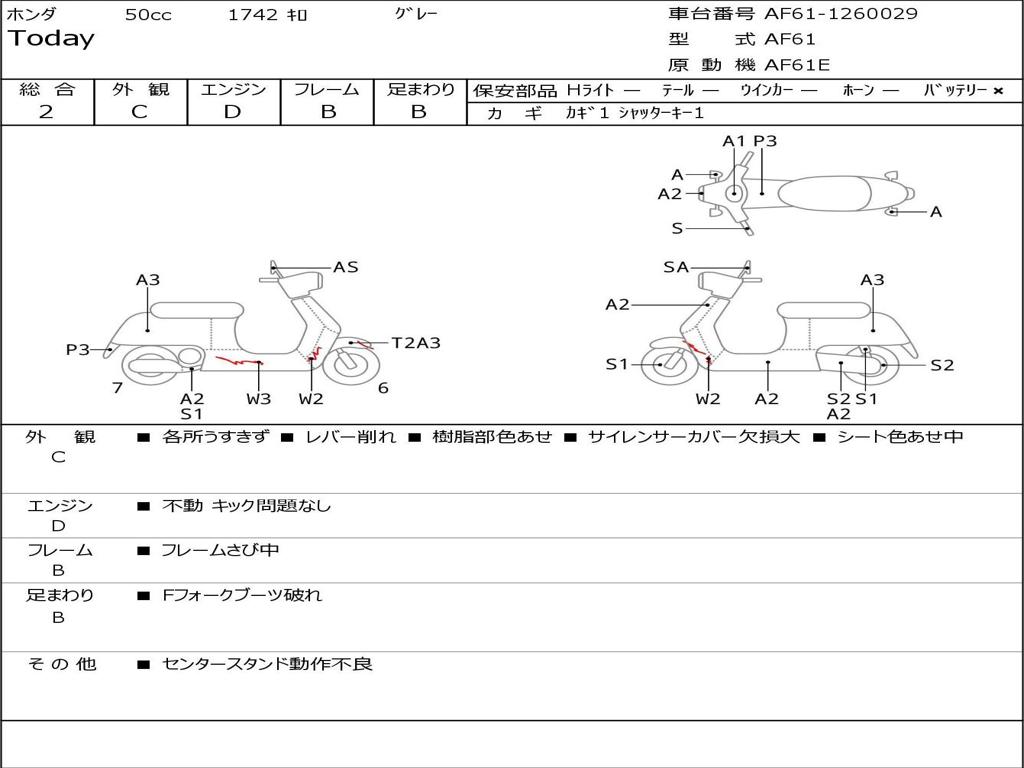 | Номер рамы / VIN | AF61-1260029 |