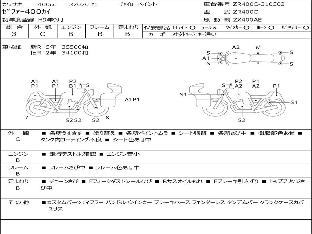 | Номер рамы / VIN | ZR400C-310502 |