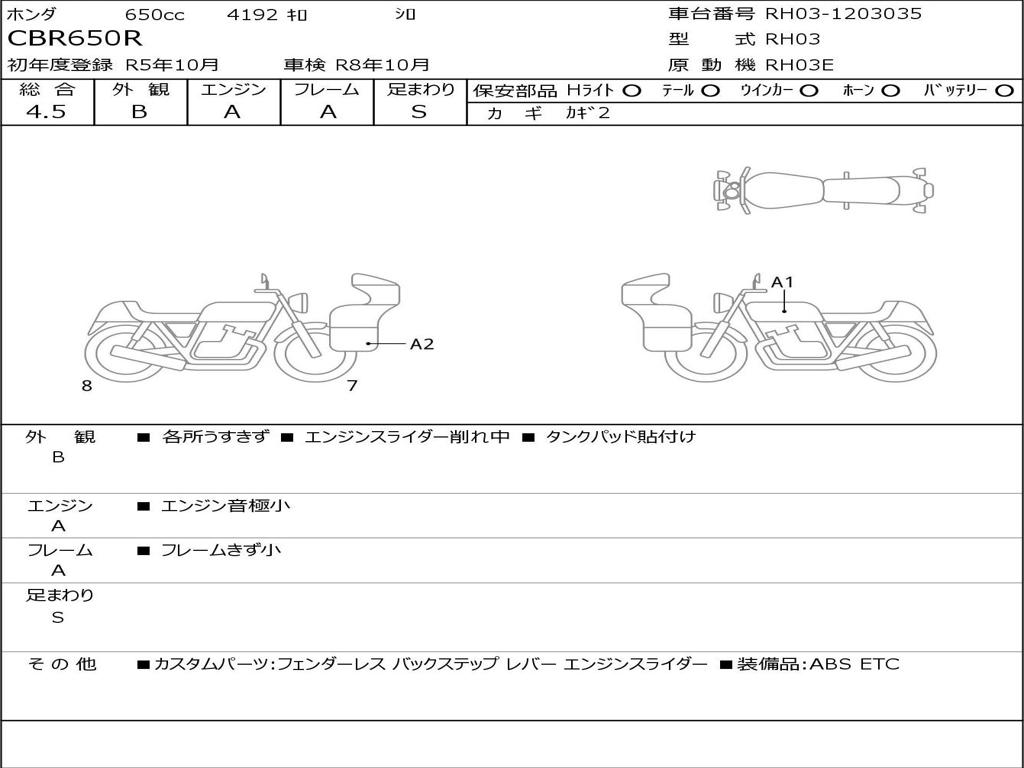 | Номер рамы / VIN | RH03-1203035 |