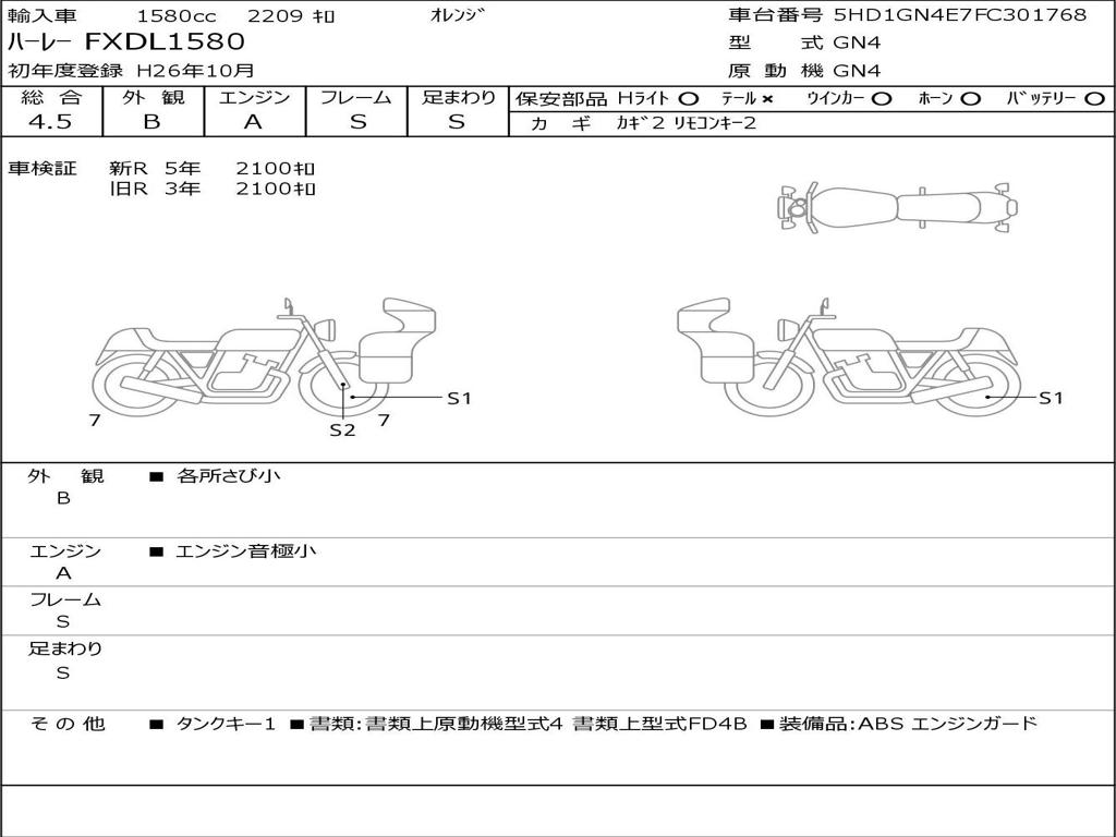 | Номер рамы / VIN | 5HD1GN4E7FC301768 |