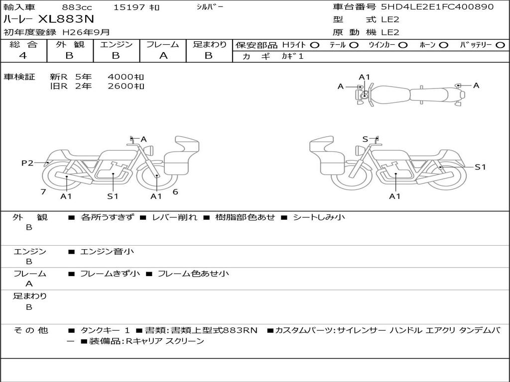 | Номер рамы / VIN | 5HD4LE2E1FC400890 |