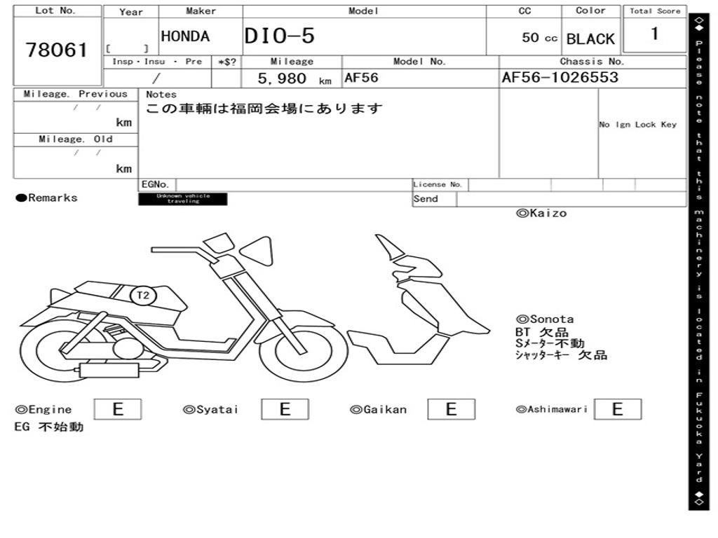 | Номер рамы / VIN | AF56-1026553 |
