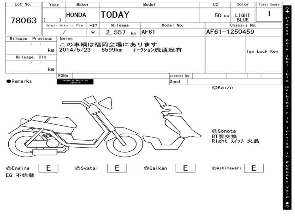 | Номер рамы / VIN | AF61-1250459 |
